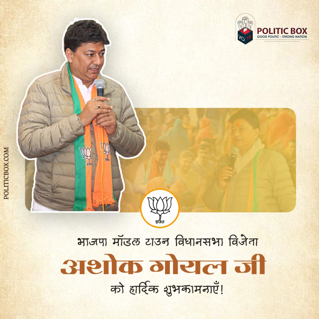 भाजपा मॉडल टाउन विधानसभा के विजेता अशोक गोयल जी को हार्दिक शुभकामनाएँ! 🎉 इस शानदार जीत के पीछे जनता का अपार समर्थन, संगठन की मेहनत और एक मजबूत चुनावी रणनीति का बड़ा योगदान रहा। इस पूरे चुनावी अभियान में Politic Box ने एक अहम भूमिका निभाई, जहां हमारी टीम ने PR, डिजिटल मार्केटिंग, ग्राउंड कैंपेनिंग और चुनावी रणनीति को बखूबी संभाला।